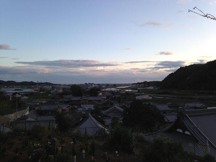 本堂裏の小高い墓地に登りますと、みなべ湾が望め、